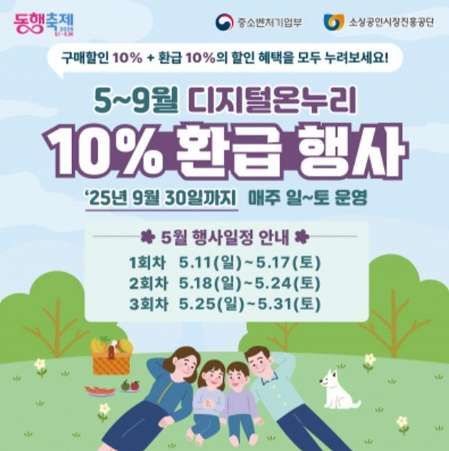 - 디지털 온누리상품권을 10% 할인된 가격으로 구매