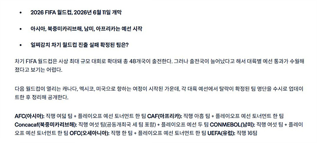 | 북중미 (CONCACAF) | 3~5장 | 🇺🇸 🇲🇽 🇨🇦(개최국 외 추가 진출국 미정) |