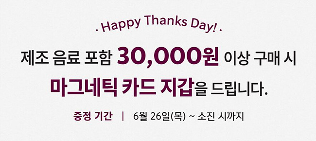 | 카드지갑 이벤트 | 제조 음료 포함 3만 원 이상 구매 시, 랜덤 1종 증정 |