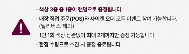 | 증정 색상 | 라이트 퍼플 / 소프트 핑크 / 네이비 |