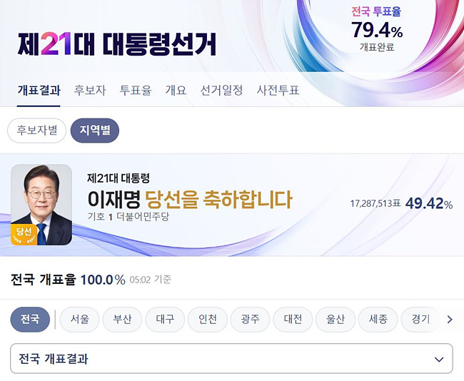 1. 제21대 대통령선거 전국 개표 결과 총정리