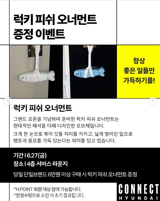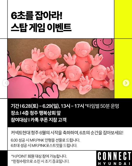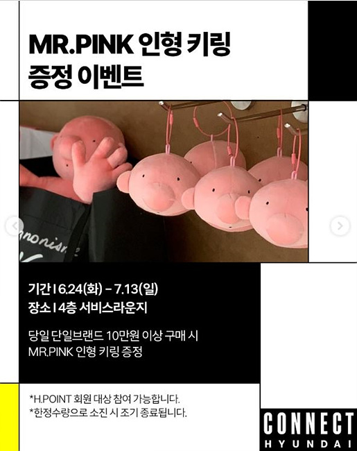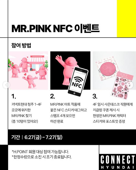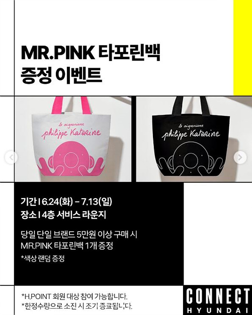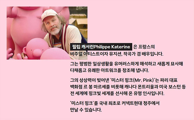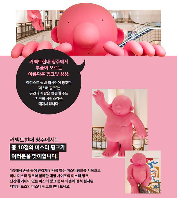 오픈 기념으로 커넥트현대 전 층에서는 프랑스 아티스트 필립 캐서린의 ‘Mr.Pink’ 프로젝트 전시가 진행됩니다.