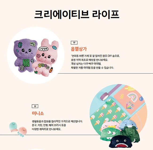 - 4층: 청년 작가들과 협업한 ‘청주행복상회’와 충청도 감성 굿즈