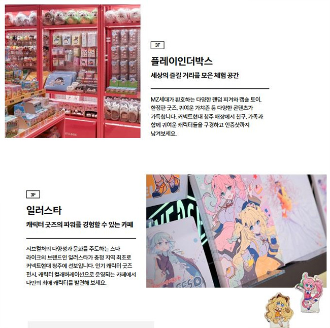 - 3층: 피규어, 캐릭터 굿즈, 방탈출 등으로 구성된 ‘컬처&마니아’