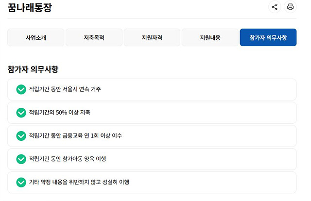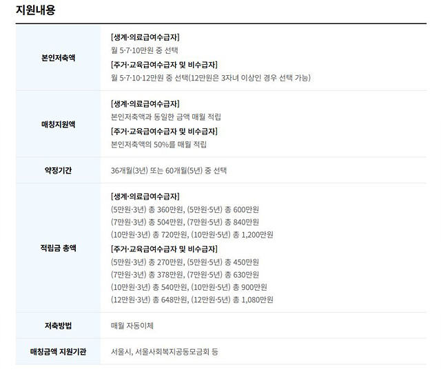 - 방식: 3년 또는 5년간 저축 → 서울시가 50% 매칭