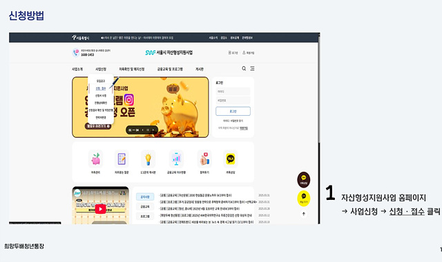 이 역시 서울시 자산형성지원 누리집 또는 주민센터에서 신청 가능합니다.